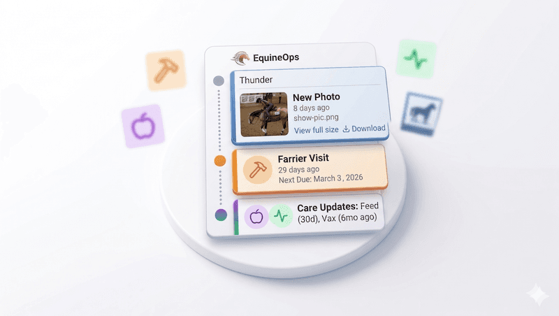 Barn management starts with good records. A quick guide to tracking vaccinations, farrier visits, feed plans, and vet notes across multiple horses — for trainers and barn managers.
