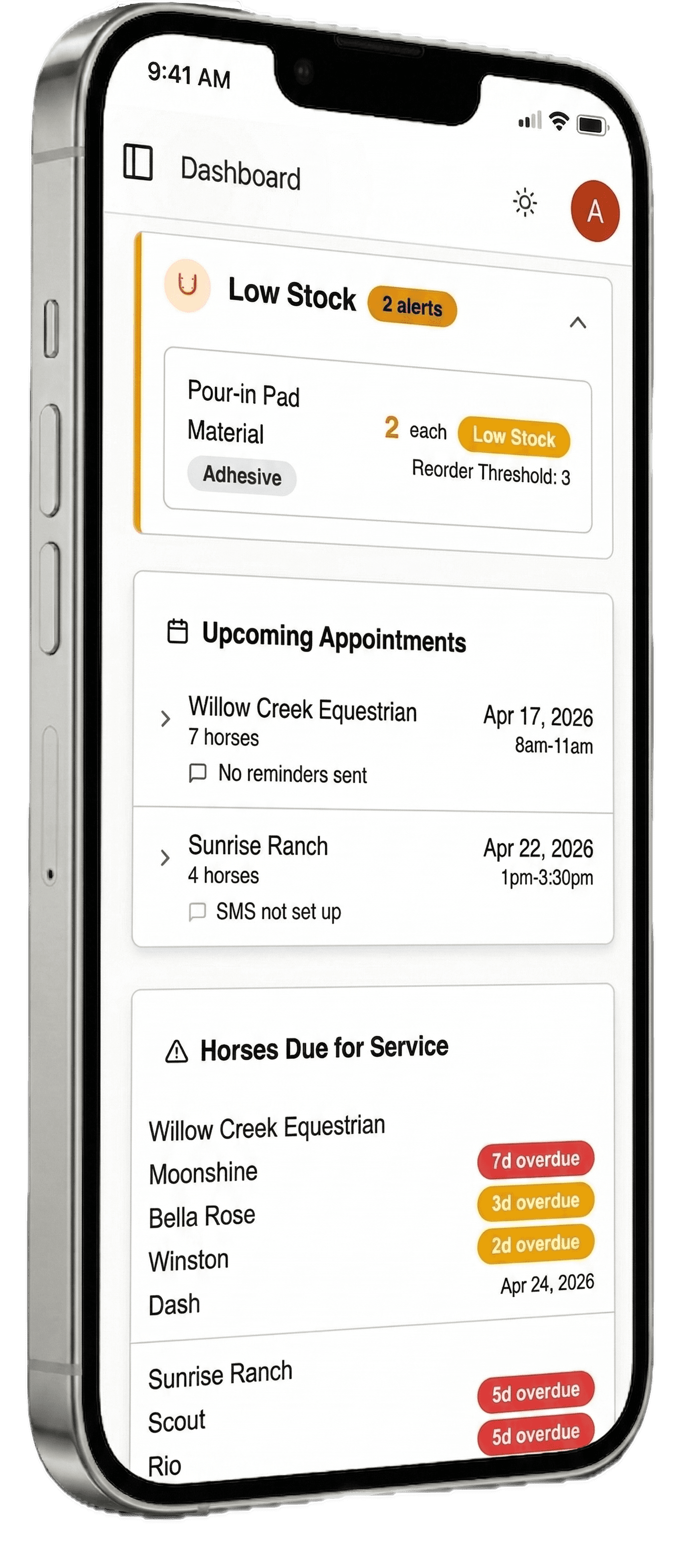 You’re a craftsman, not a bookkeeper. EquineOps for Farriers automates the boring stuff so you can manage your time, protect your margins, and get back to what you do best.